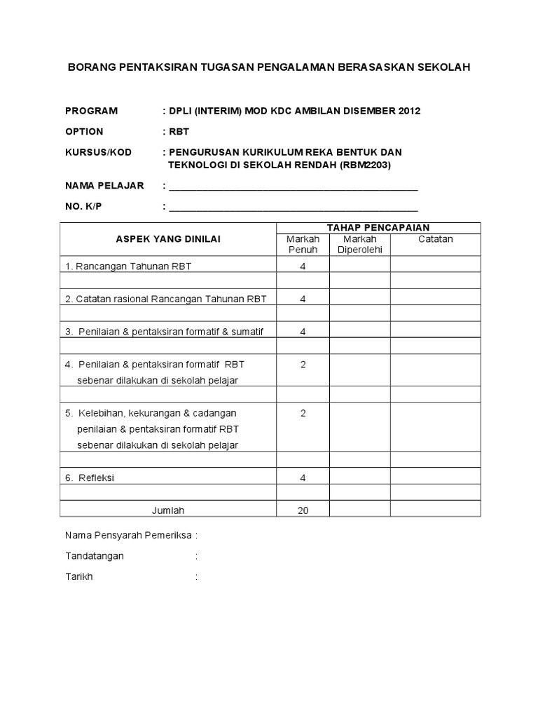 Borang Penilaian Taksiran Tugasan Pbs Pdf